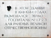 Надпись: «В этом здании в 1941-1944 годах размещался эвако-госпиталь № 1723 для раненых Великой Отечественной войны».